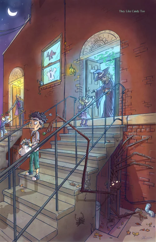 Halloween is my favorite holiday, and spiders have always held a morbid fascination for me. This was a drawing prompt for the SCBWI.